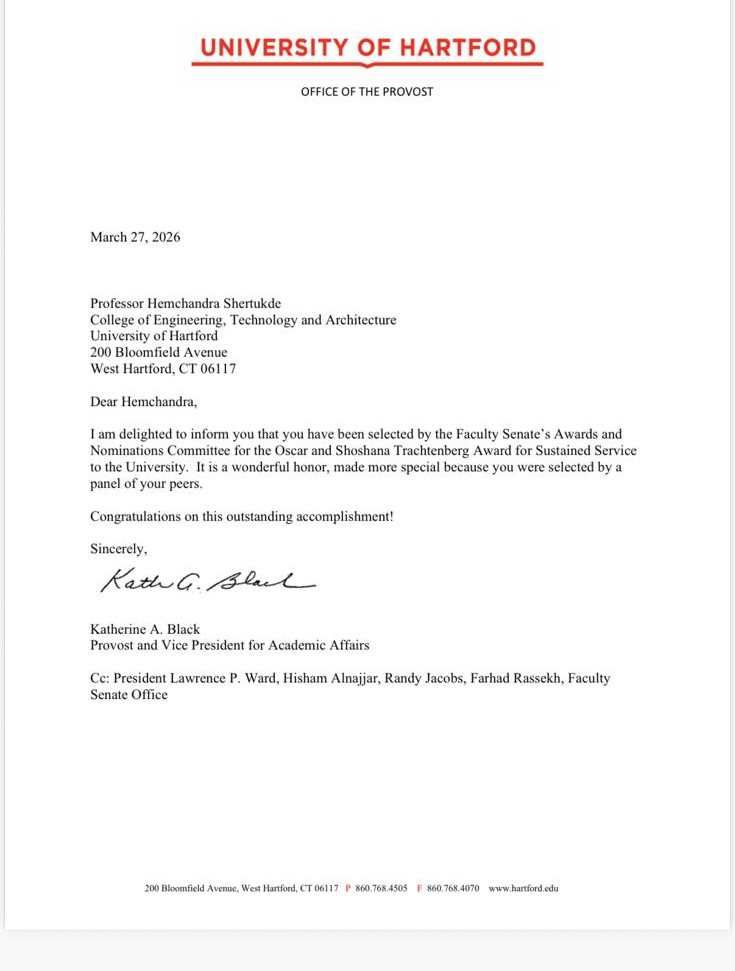 Dr. Shertukde is presently a tenure Full Professor since 1995 at the University of Hartford.